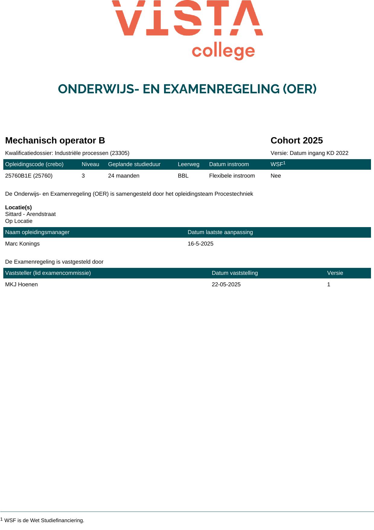 Mechanisch operator B 25760B1E in cohort 2025-2026