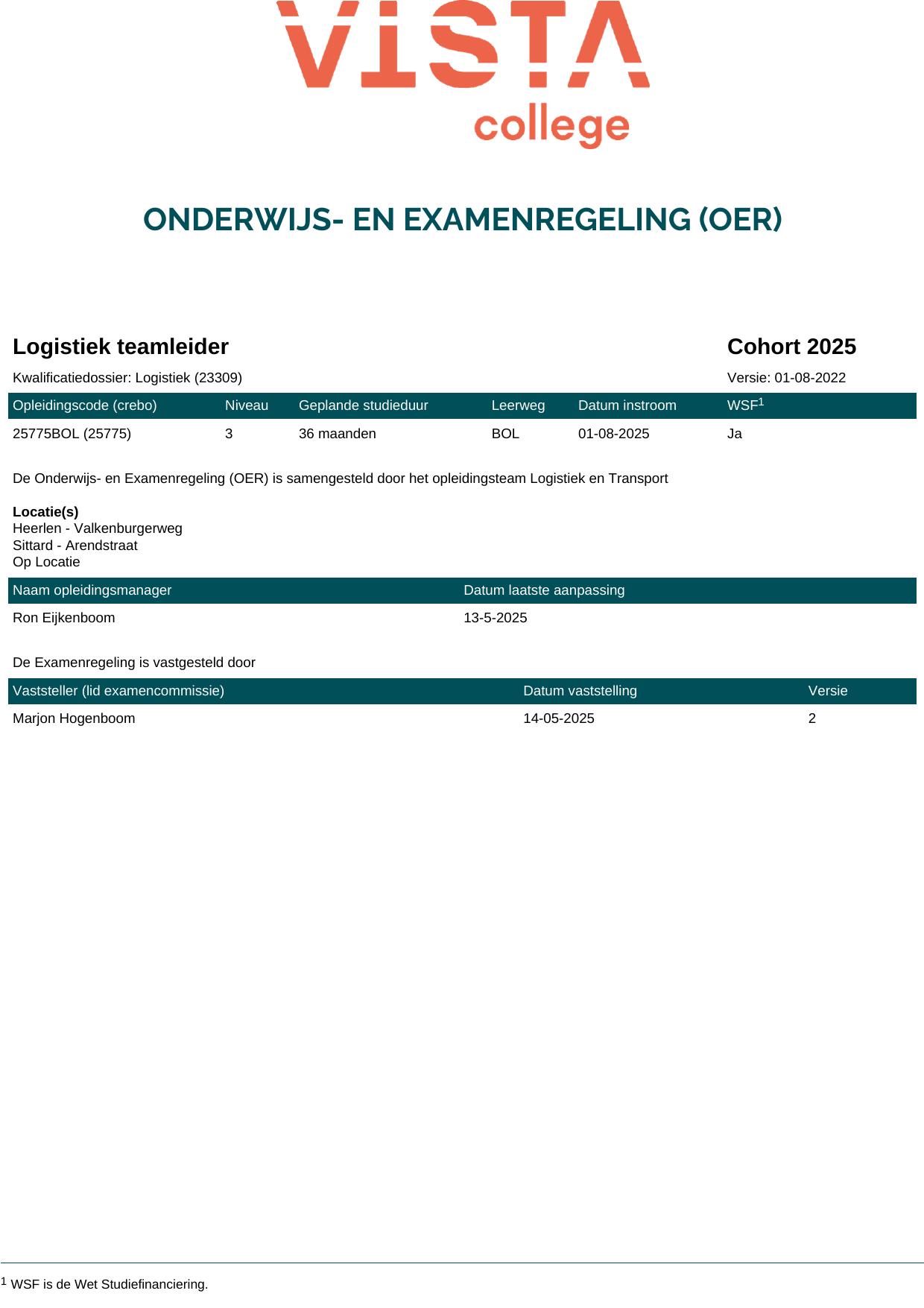 Logistiek teamleider 25775BBL1 in cohort 2025-2026