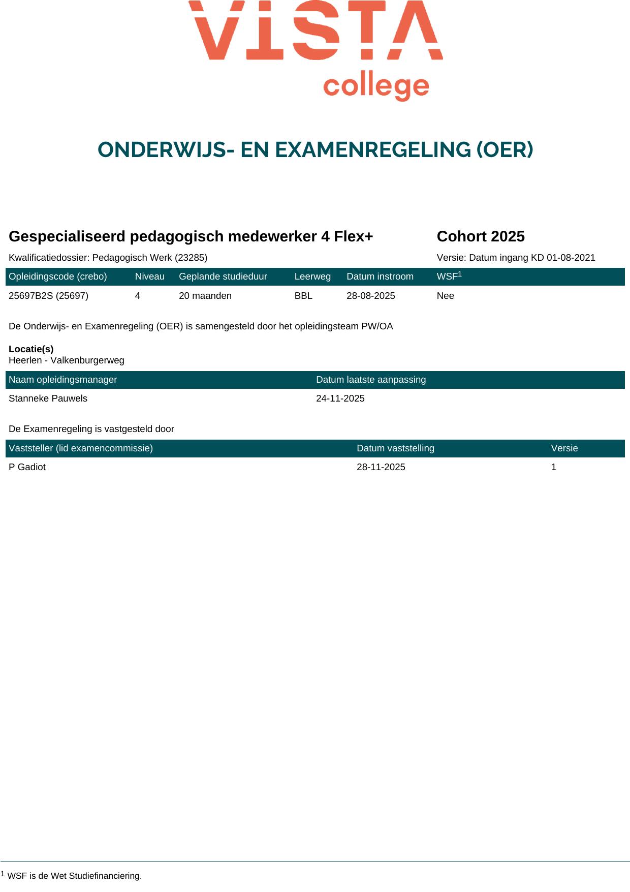 Gespecialiseerd pedagogisch medewerker 4 Flex+ 25697B2S in cohort 2025-2026
