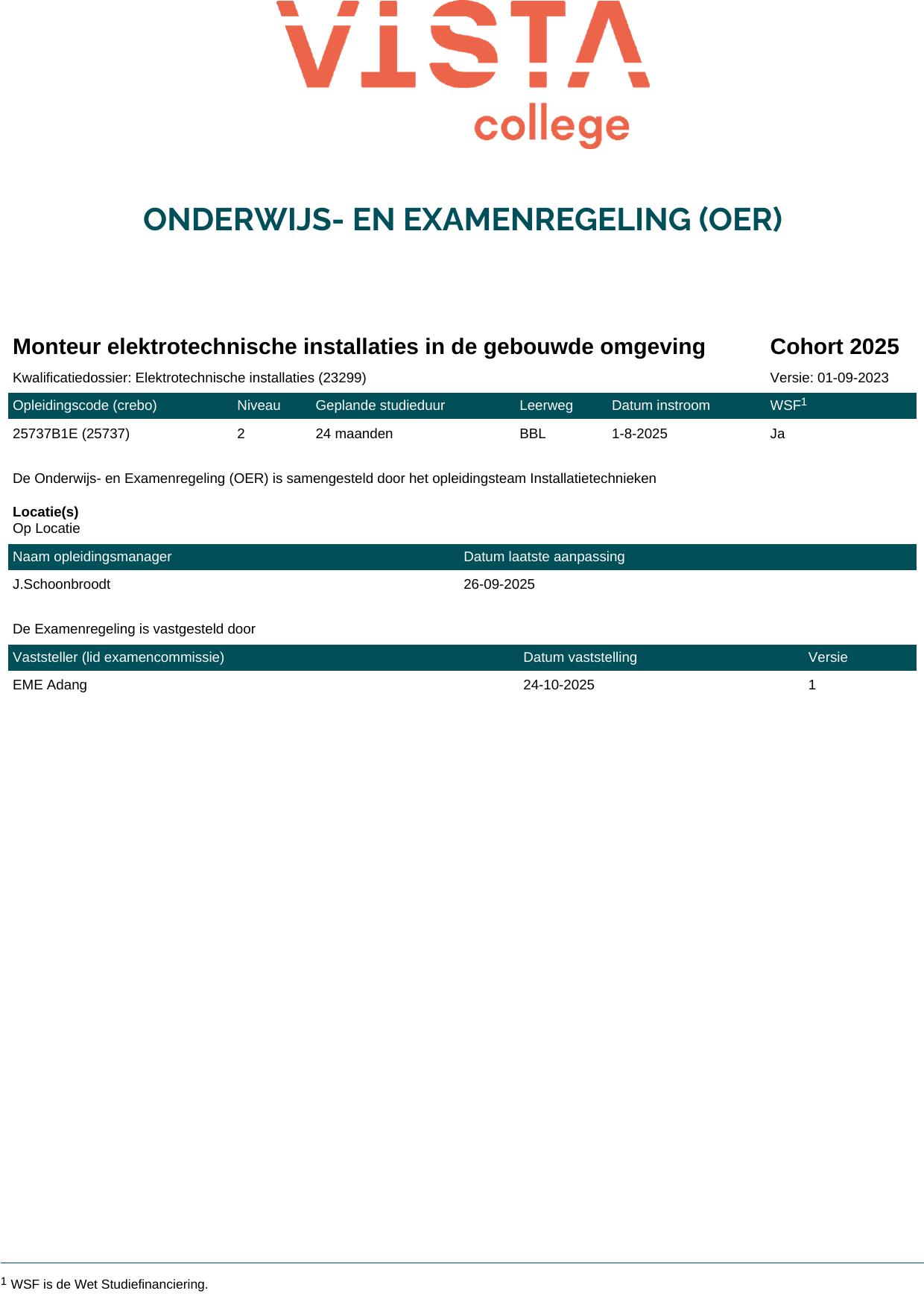 Monteur elektrotechnische installaties in de gebouwde omgeving 25737O1S in cohort 2025-2026