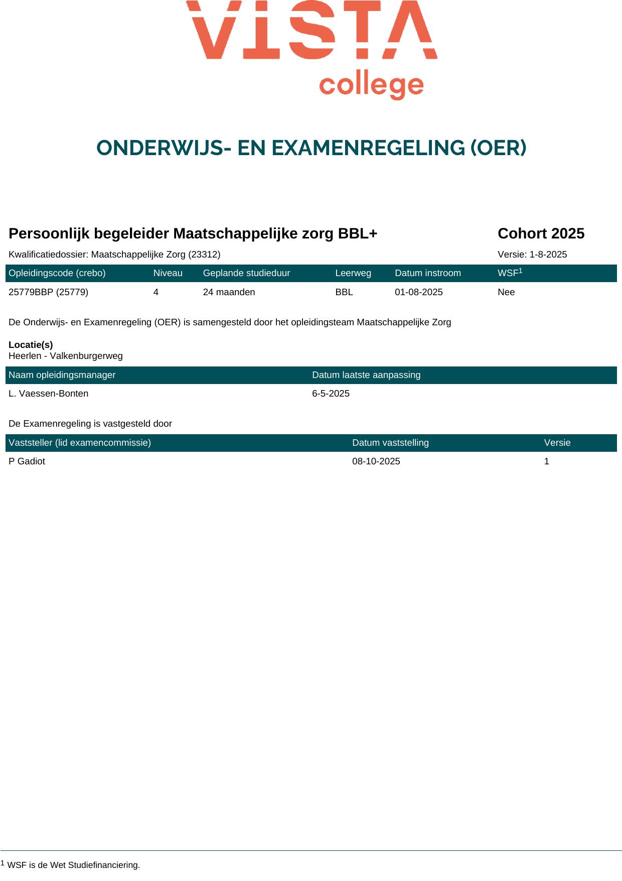 Persoonlijk begeleider Maatschappelijke zorg BBL+ 25779BBP in cohort 2025-2026