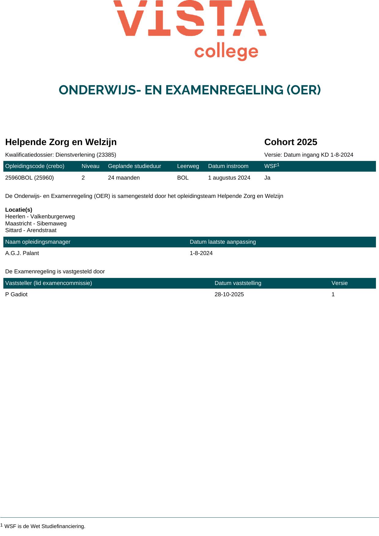 Helpende Zorg en Welzijn 25960BOL in cohort 2025-2026