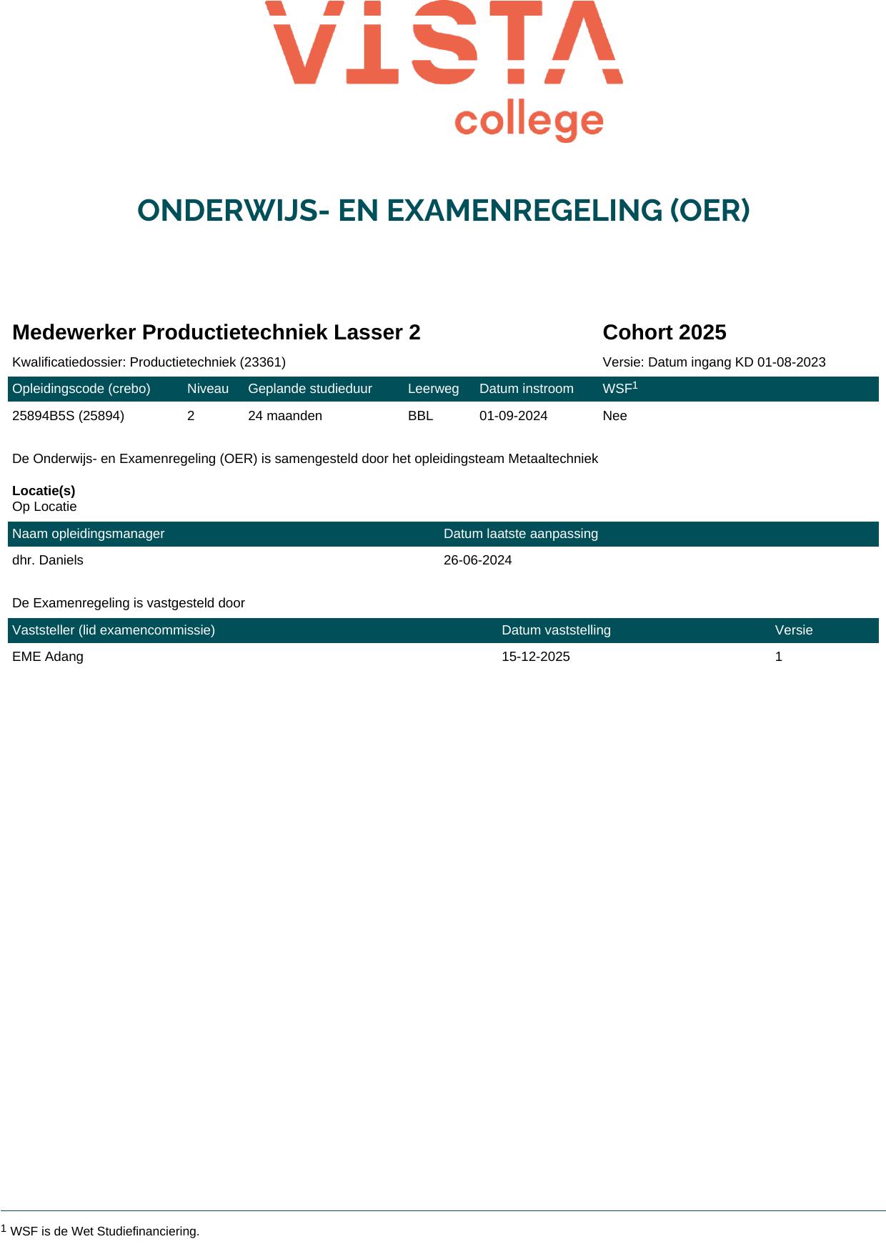 Medewerker Productietechniek Lasser 2 25894B5S in cohort 2025-2026