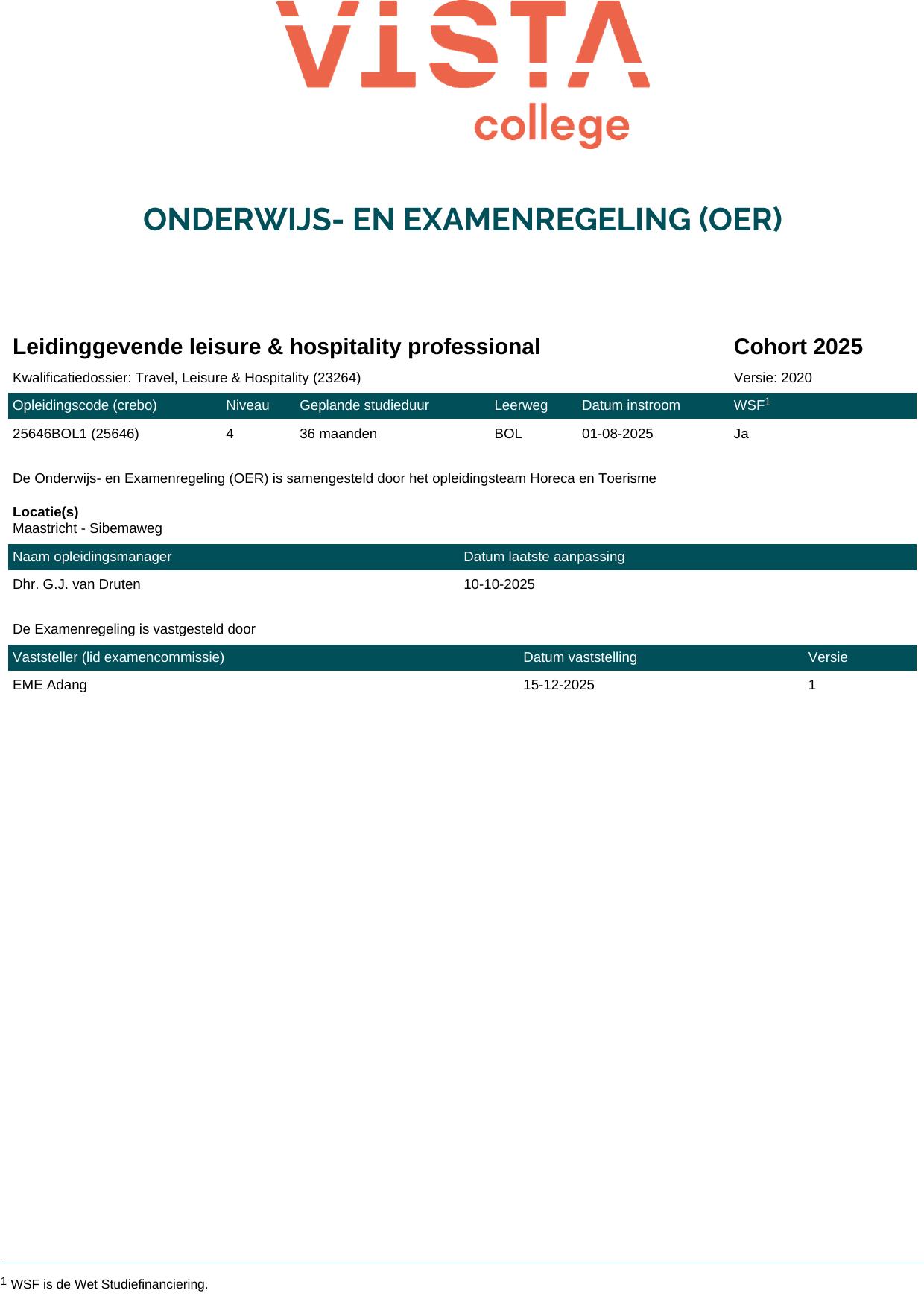 Leidinggevende leisure & hospitality professional 25646BOL1 in cohort 2025-2026