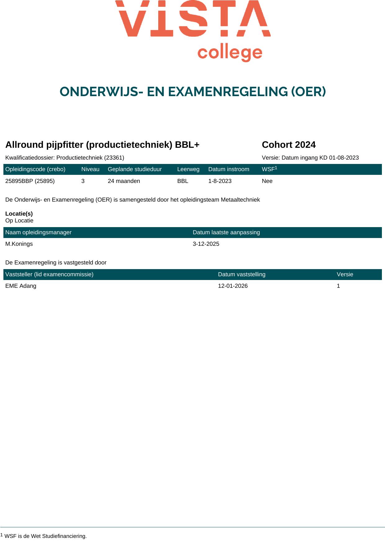 Allround pijpfitter (productietechniek) BBL+ 25895BBP in cohort 2024-2025