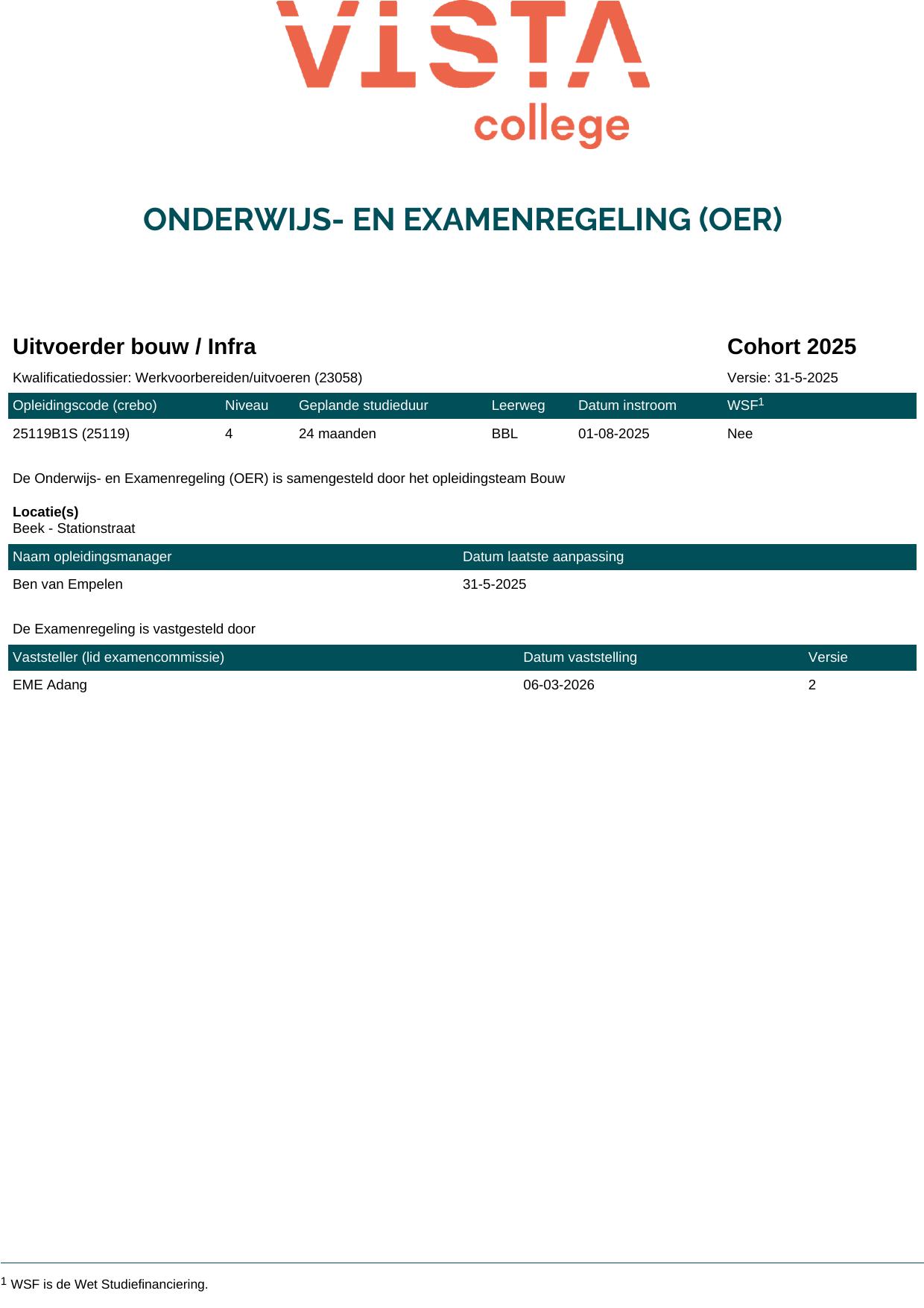 Uitvoerder bouw / Infra 25119B1S in cohort 2025-2026