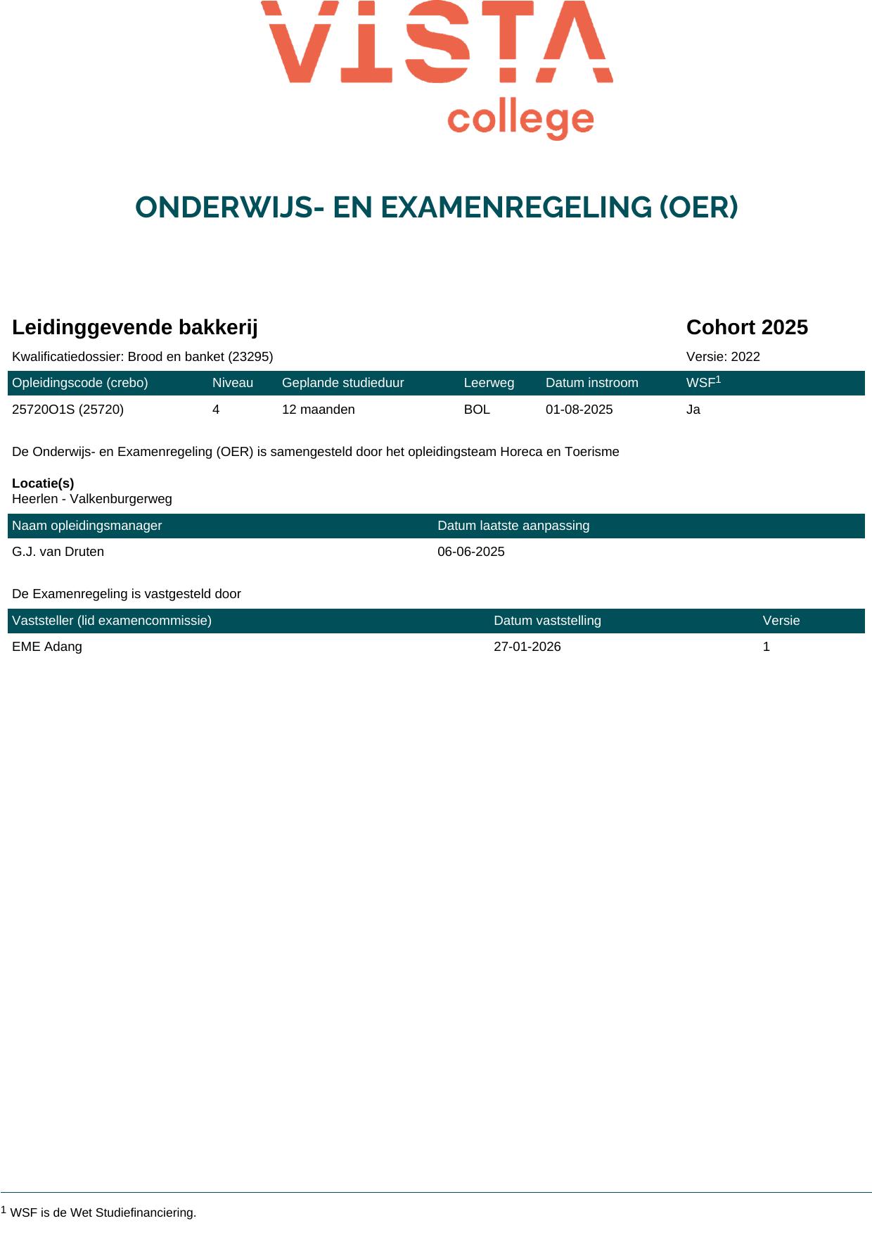 Leidinggevende bakkerij 25720O1S in cohort 2025-2026