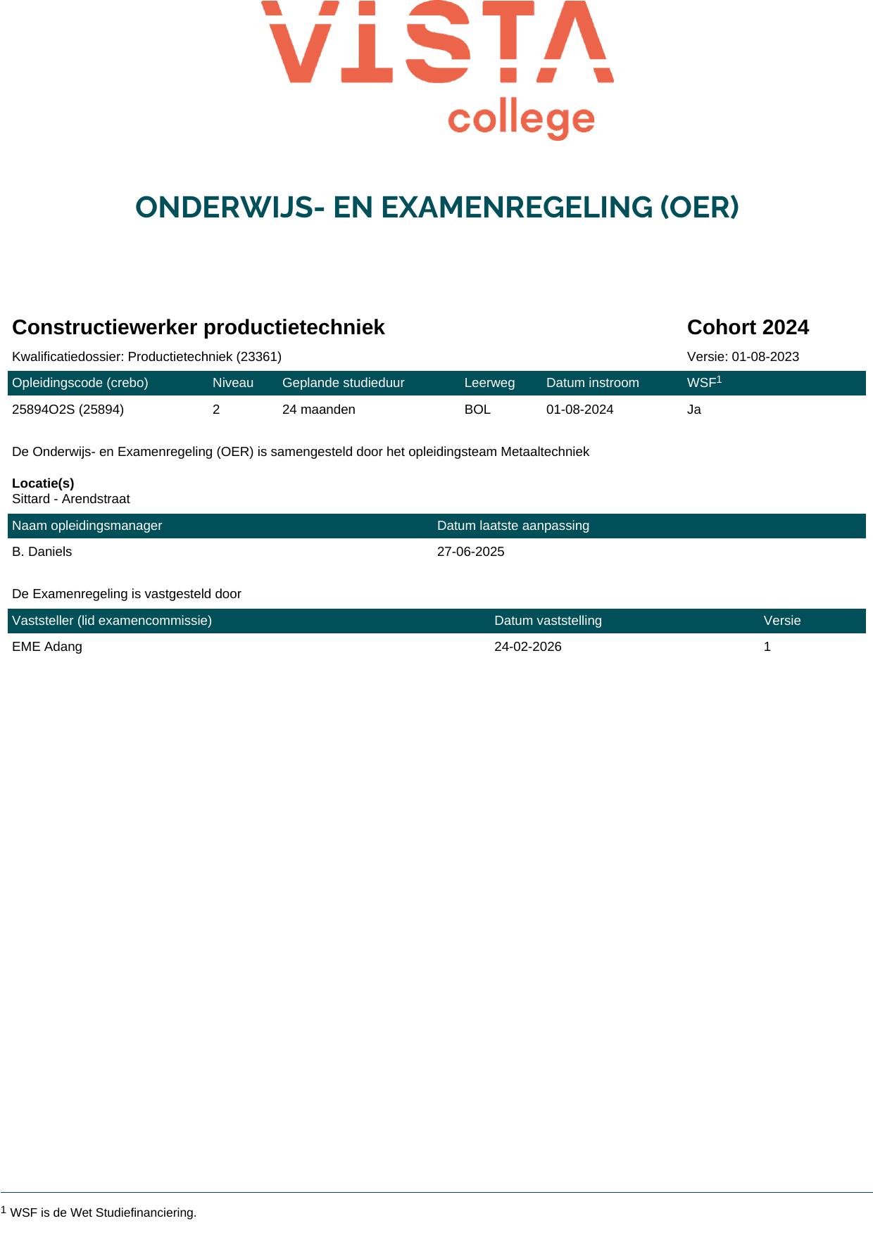 Constructiewerker productietechniek 25894O2S in cohort 2024-2025