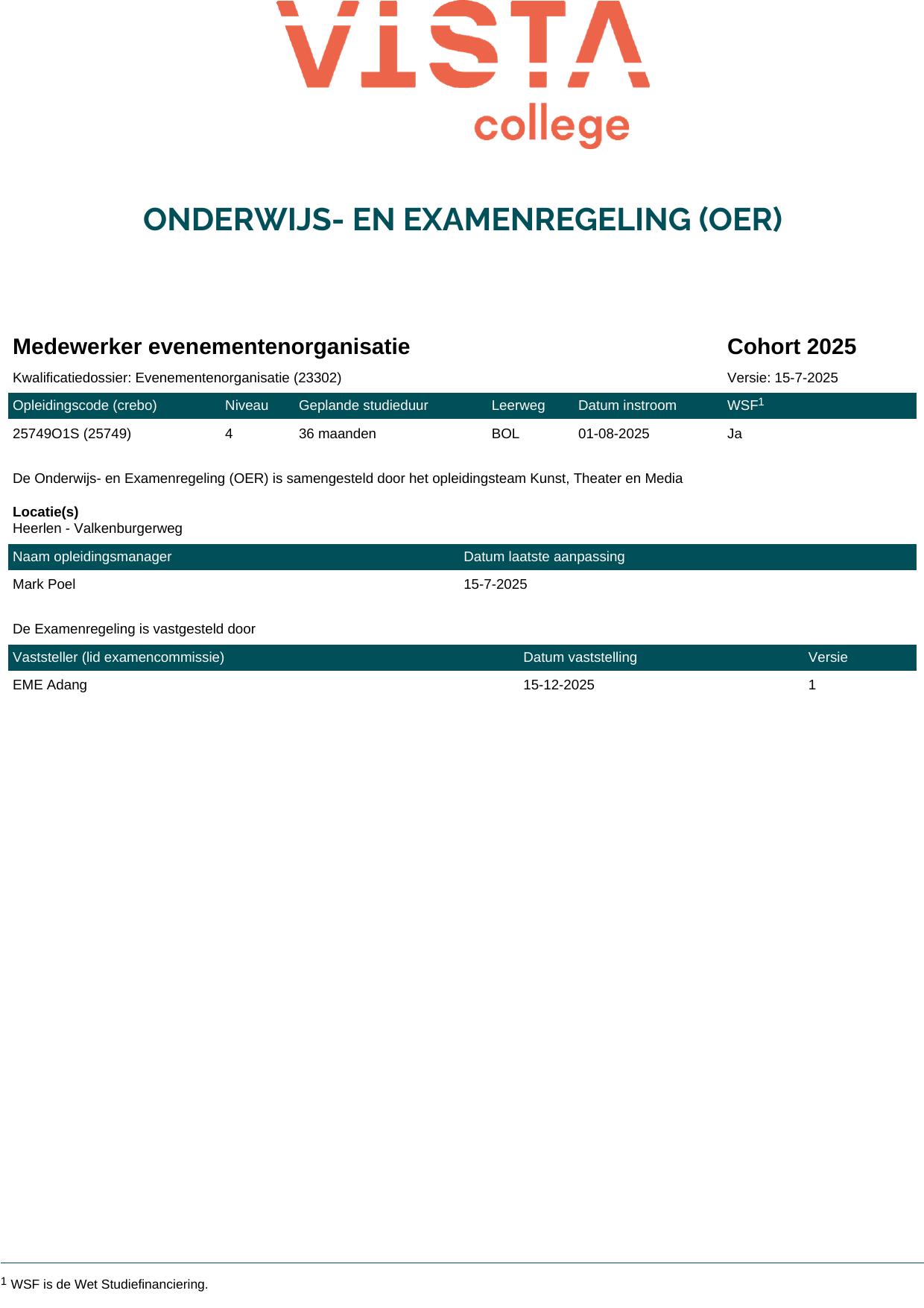 Medewerker evenementenorganisatie 25749O1S in cohort 2025-2026