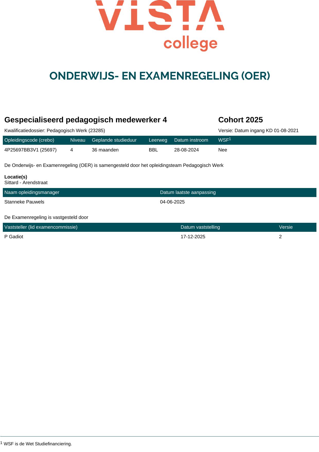 Gespecialiseerd pedagogisch medewerker 4 4P25697BB3V1 in cohort 2025-2026